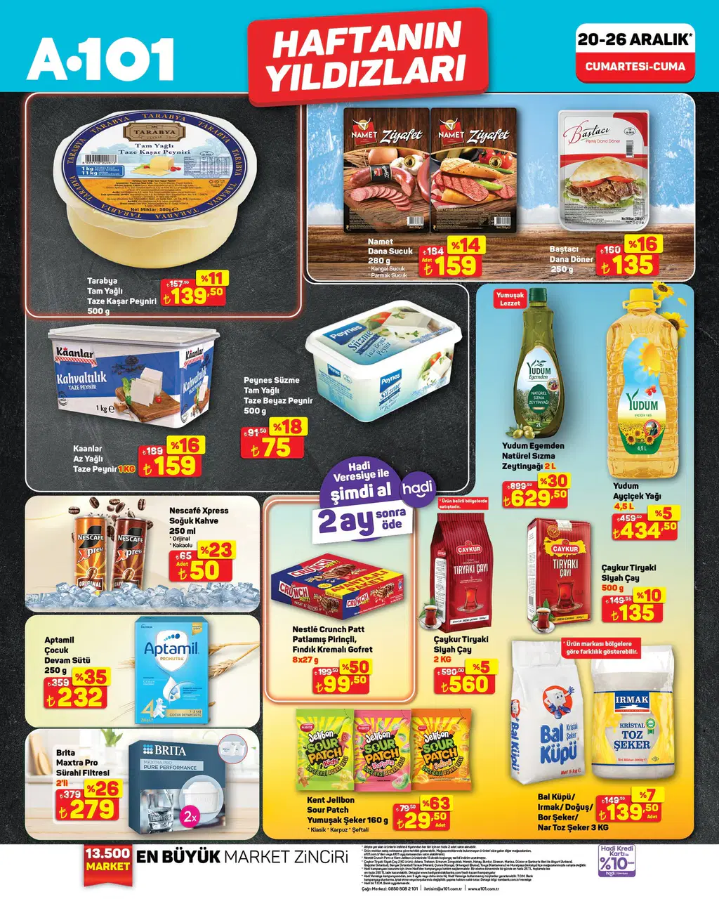 A101 marketlerinde 20.12.2025 tarihinden itibaren geçerli haftanın yıldızları fırsatlarıyla bütçenize dost alışverişin keyfini çıkarın!