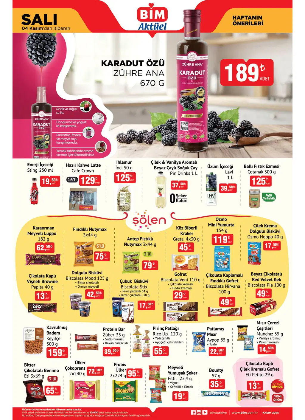 BİM, 04 Kasım 2025 tarihinden itibaren geçerli aktüel ürünler kataloğunu sundu. Bu hafta et ürünlerinden temel gıdalara, atıştırmalıklardan içeceklere birçok kategoride cazip fiyatlar dikkat çekiyor.
