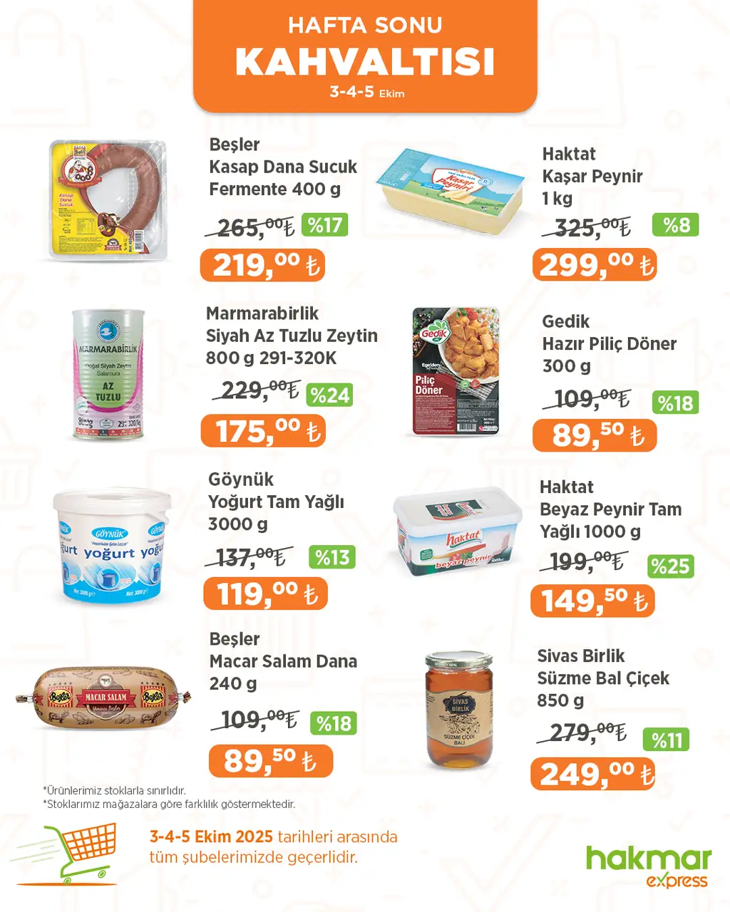 3-4-5 Ekim 2025 tarihlerinde Hakmar Express'te geçerli, sofralarınızı zenginleştirecek kahvaltılık ürünlerde büyük indirimler sizleri bekliyor. Bu fırsatları kaçırmayın!