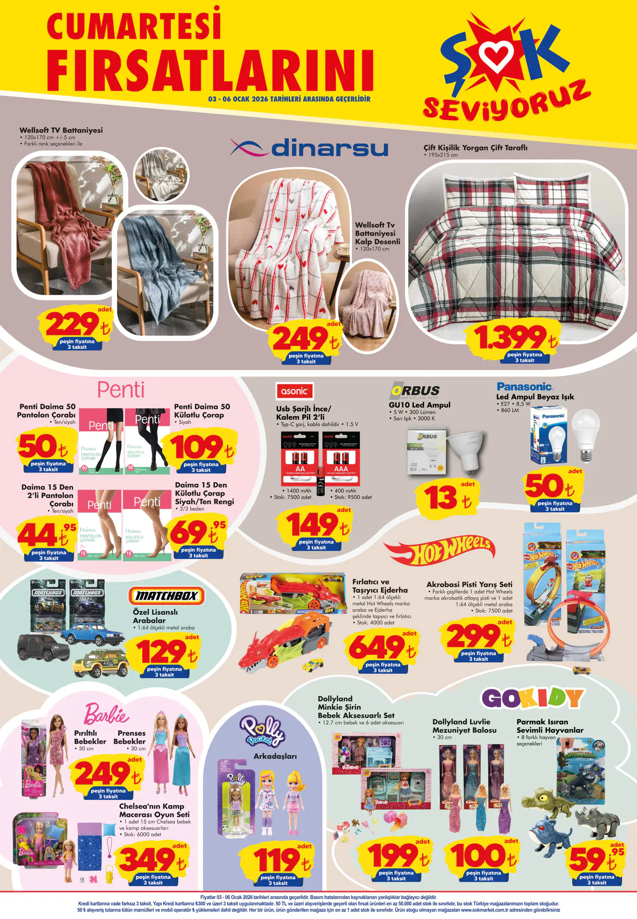Belirtilen aktüel ürünler 3 Ocak 2026 tarihinden itibaren geçerli olup, stoklarla sınırlıdır. İndirimli ürünlerden faydalanmak için ŞOK mağazalarını ziyaret etmeyi unutmayın.